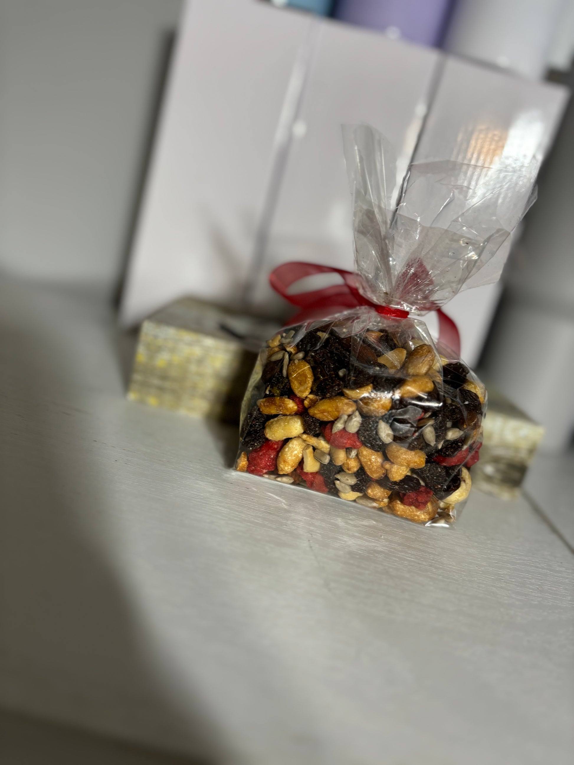 Introducing our Energy Mix Trail Mix – the perfect blend of nourishing ingredients to fuel your adventures! Packed with an energizing combination of nuts, seeds, dried fruits, and a touch of candy nuts, this trail mix is designed to keep you going, whether you're hitting the trails or tackling a busy day.