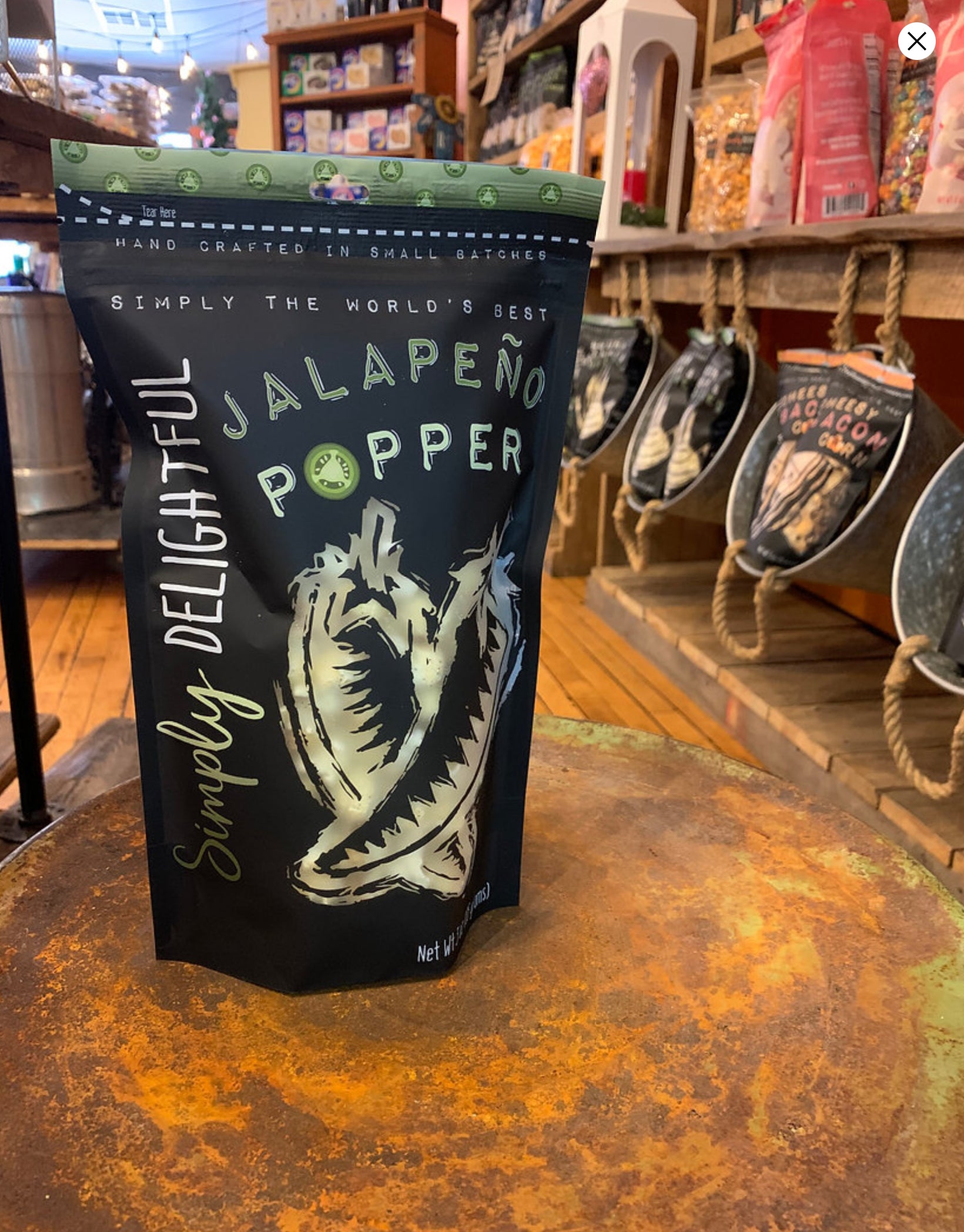 Jalapeño Poppers! Prepare your taste buds for an explosion of spice and crunch with this exciting snack. Each kernel is coated in a zesty blend of jalapeño seasoning, creating a tantalizing heat that's balanced with a hint of creamy goodness reminiscent of your favorite jalapeño poppers.