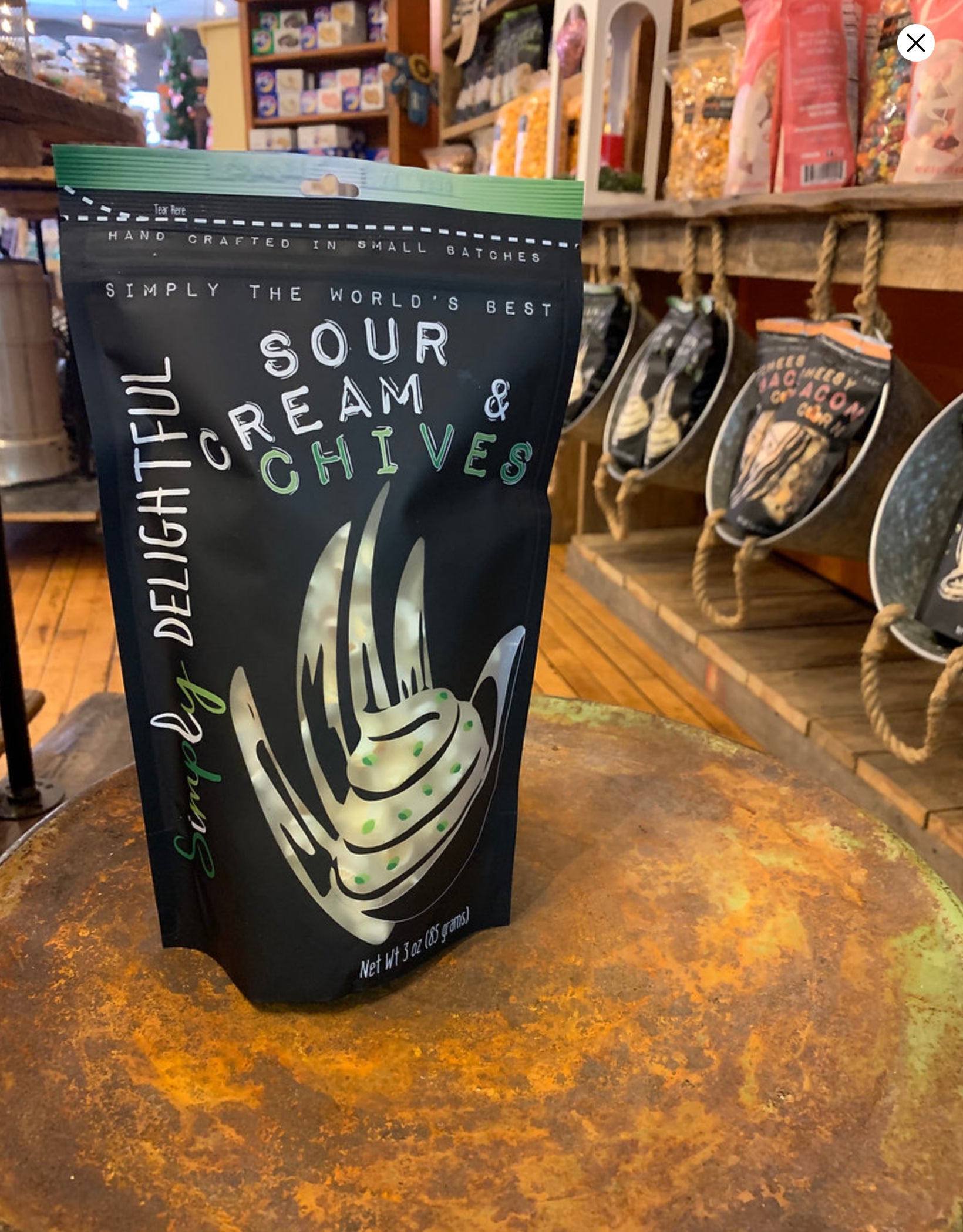 Sour Cream & Chives! Prepare your taste buds for a savory sensation like no other. Each kernel is generously coated with the creamy tanginess of sour cream and the irresistible aroma of fresh chives. It's the perfect blend of zesty flavor and crunchy goodness, guaranteed to satisfy your snack cravings.